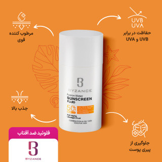 فلوئید ضدآفتاب فیوژن واتر SPF 50 بیزانس، محافظ روزانه بر پایه آب با بافت بسیار سبک و شفاف است و روی پوست احساس سنگینی ندارد. برای خانمها و آقایان مناسب است؛ برای پوستهای چرب، مختلط و حساس طراحی شده و روی دست و صورت قابل استفاده است. ترکیب پیشرفته آن جذب سریع و حس تمیز و راحت در روتین روزانه را به شما می دهد.